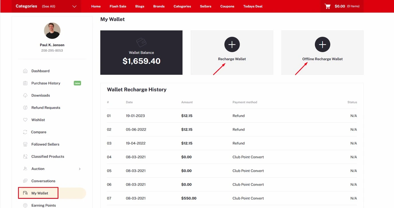 After adding money to your wallet, you can purchase products directly using your wallet balance.