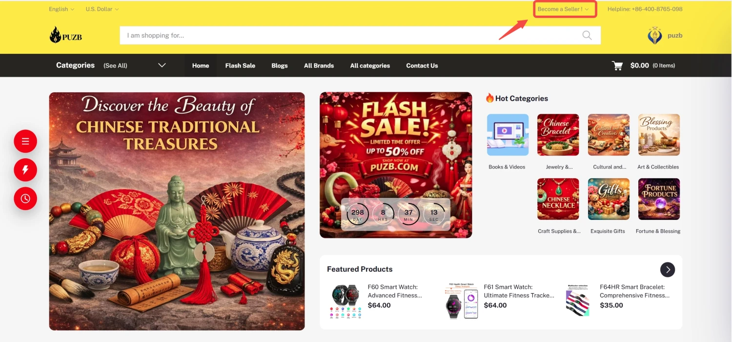 To become a seller, you need to register your shop on the website. Follow these steps carefully: