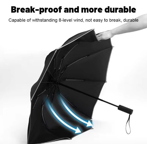 - Windproof & Waterproof: 12 reinforced ribs prevent flipping inside out; Teflon-coated fabric repels water and dries quickly.