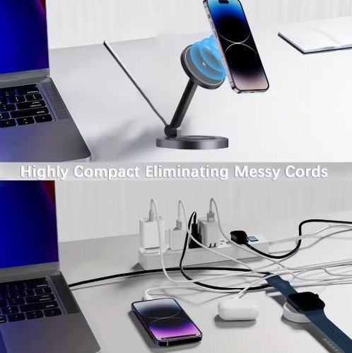The 3-in-1 Magnetic Wireless Charger Stand is designed for users seeking a convenient, clutter-free charging solution for their iPhone (12–16 series), Apple Watch, and AirPods. This charger combines MagSafe technology, fast charging, and a sleek design to deliver a seamless charging experience. Below is a detailed analysis of its features, benefits, and considerations.