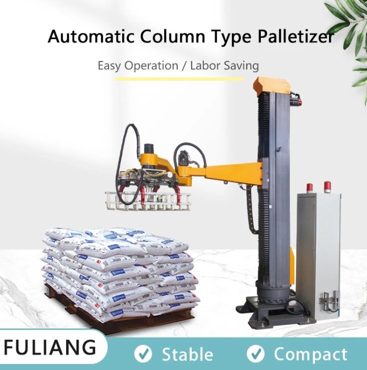 The Automatic Column Stacker Bag/Carton Robot Palletizer with Conveying Line is an integrated automation solution designed to streamline the palletizing process in industries such as manufacturing, logistics, and warehousing. This system combines robotic technology, conveyor systems, and intelligent control software to automate the stacking of bags, cartons, or boxes onto pallets with precision and efficiency.