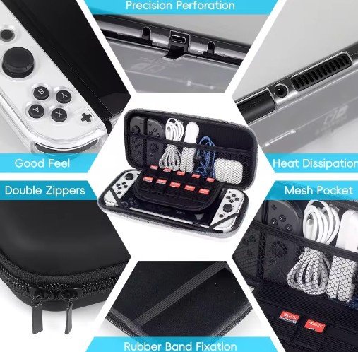 The Carrying Case for Nintendo Switch OLED is a specialized storage solution designed to protect your console, games, and accessories during travel. With a hard shell exterior, customizable interior compartments, and portability-focused features, it ensures your Switch OLED remains safe from bumps, scratches, and spills. Ideal for gamers on the go, this case combines durability with convenience, making it a must-have for commuters, travelers, or anyone who values their gaming gear.