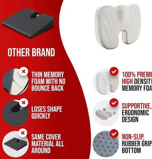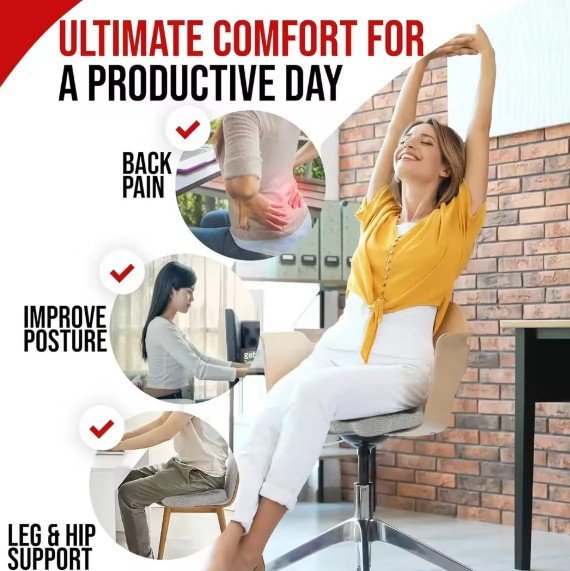 Engineered with a contoured shape, this cushion aligns with the natural curve of your spine, reducing pressure on the lower back and hips. Ideal for long hours at the office, working from home, or driving, it minimizes strain and discomfort, promoting healthier sitting posture.