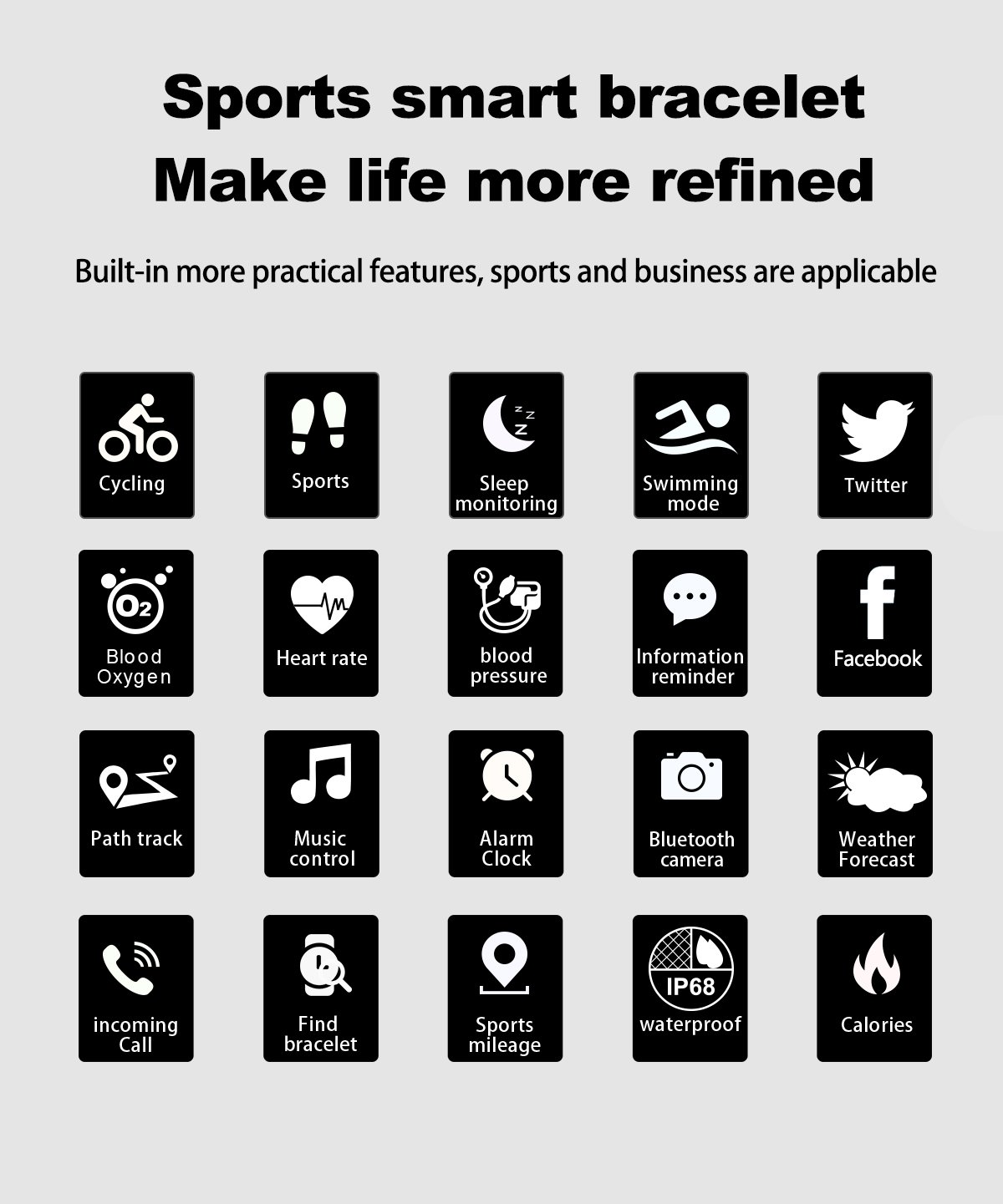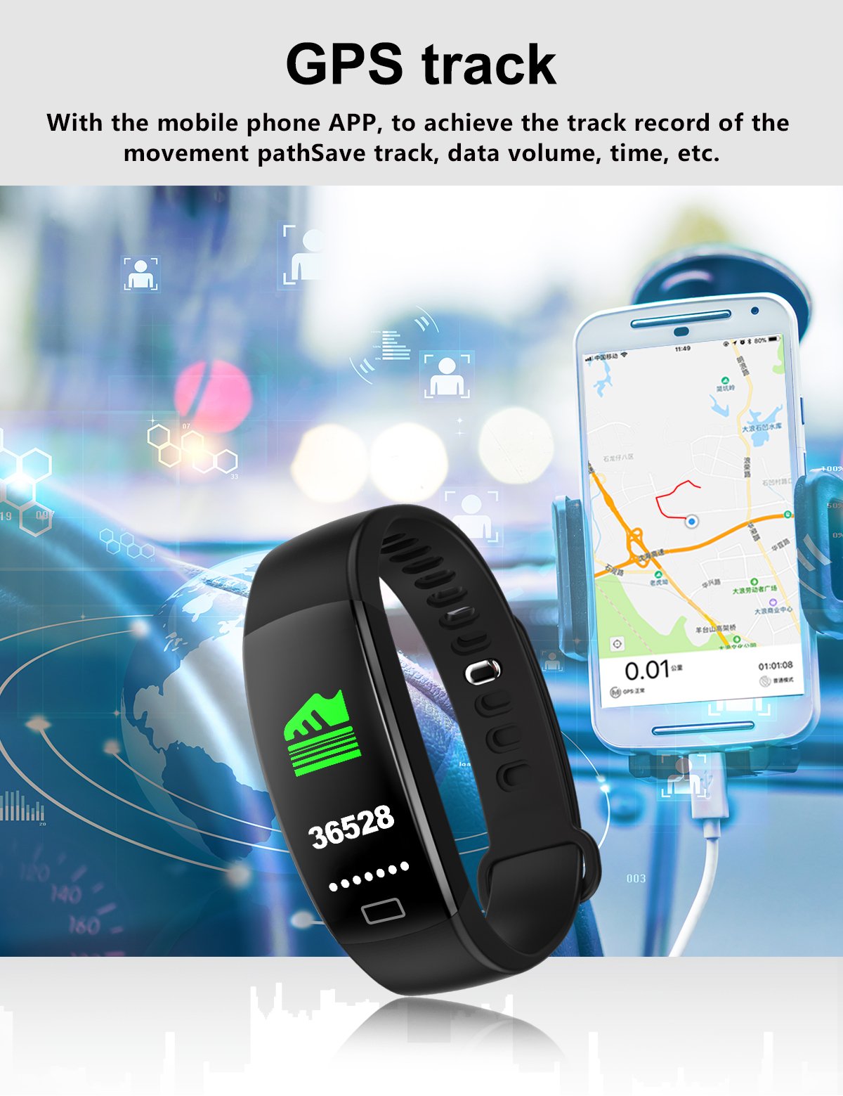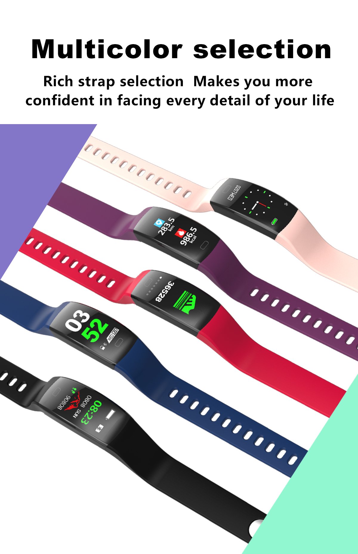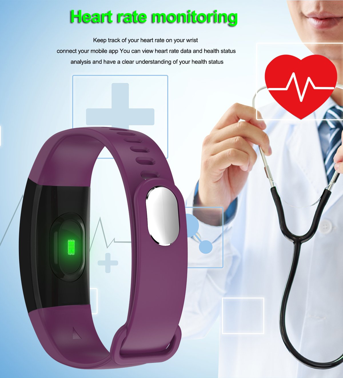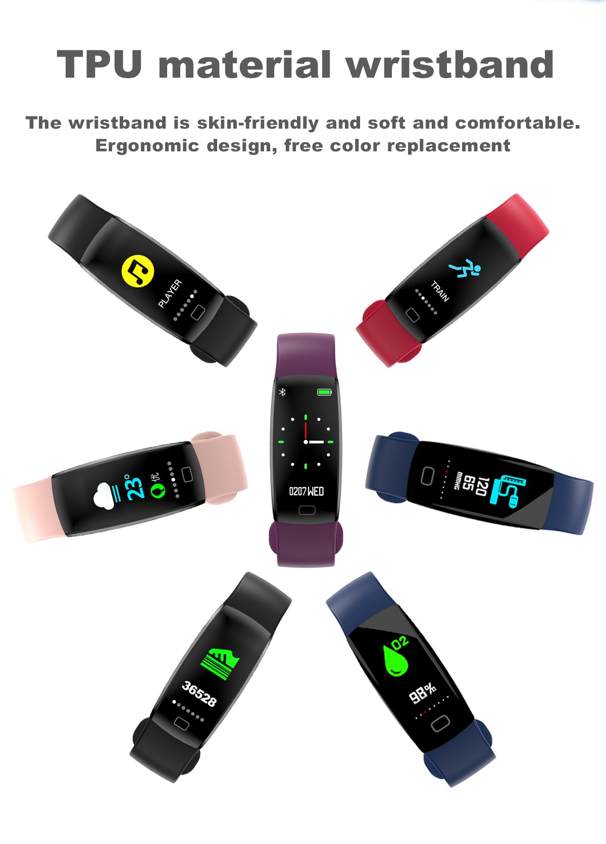 - Customizable Display: Personalize your bracelet with a variety of watch faces and customizable settings. The intuitive interface makes it easy to navigate through the bracelet's features and stay informed at a glance.