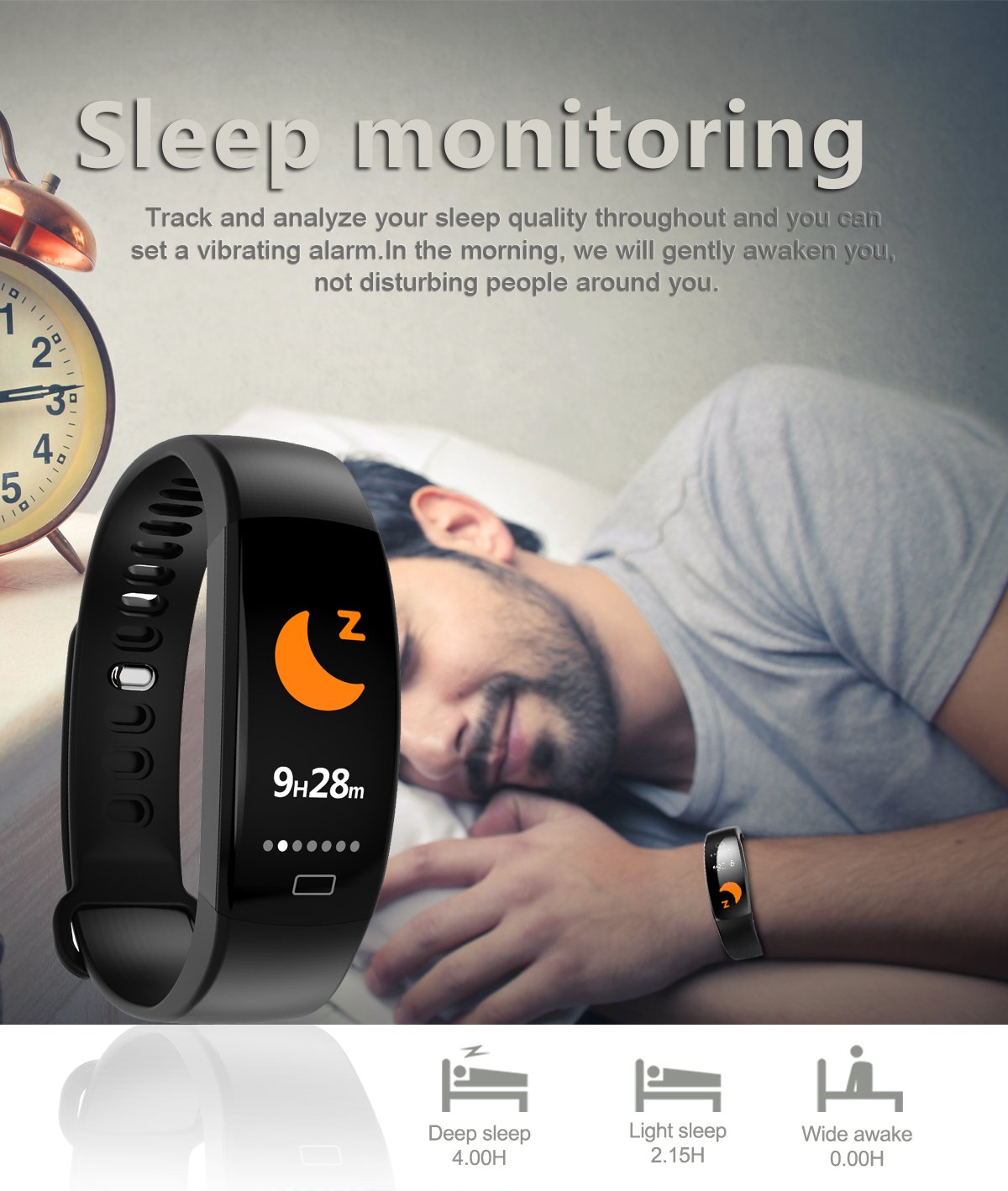 - Sleep Analyzer: Understand your sleep patterns and improve your quality of rest with the sleep analyzer feature. The bracelet tracks your sleep stages, including light sleep, deep sleep, and REM sleep, providing you with valuable insights on how to get a better night's sleep.