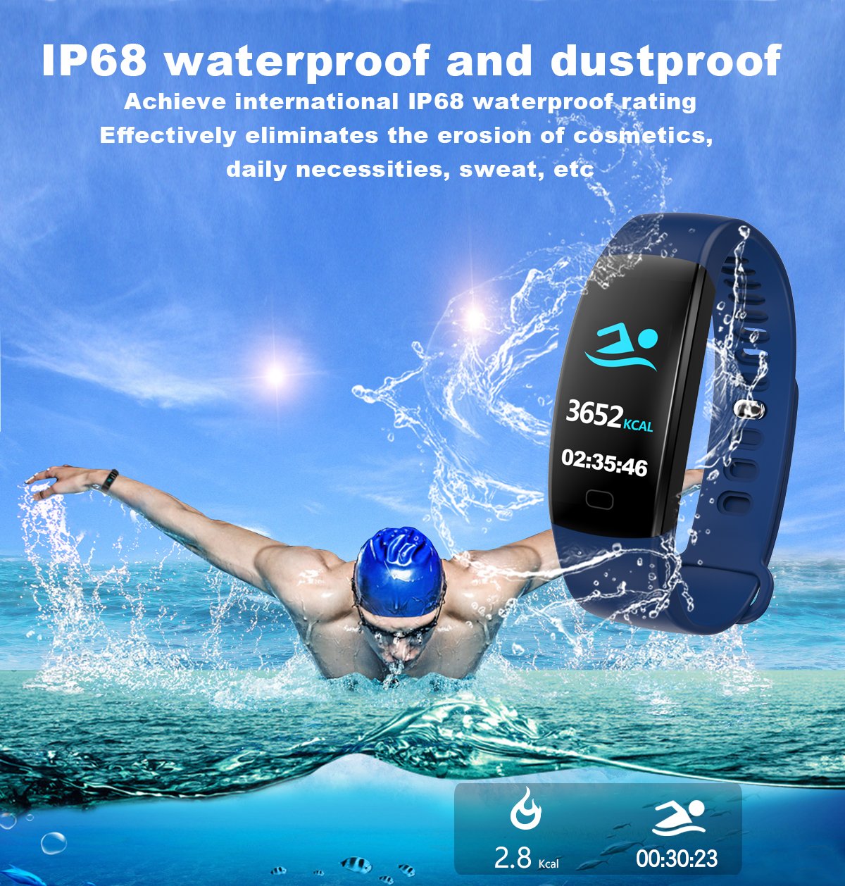 - Water-Resistant: Designed to withstand water splashes and light submersion, the F64HR is perfect for those who lead active lifestyles. Whether you're washing your hands, caught in the rain, or swimming in shallow water, this bracelet will keep you informed and active.
