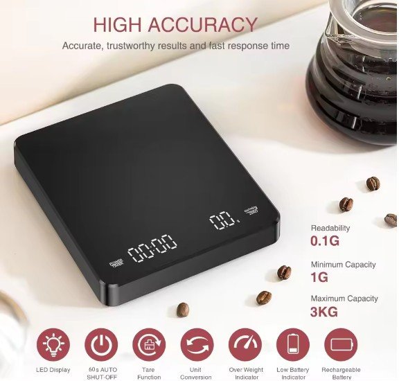Whether you’re weighing flour for sourdough, dosing coffee grounds for the perfect pour-over, or tracking portions for meal prep, this scale combines precision, portability, and practicality. Its minimalist design complements any kitchen aesthetic, while the timer adds a functional edge for time-sensitive tasks.
