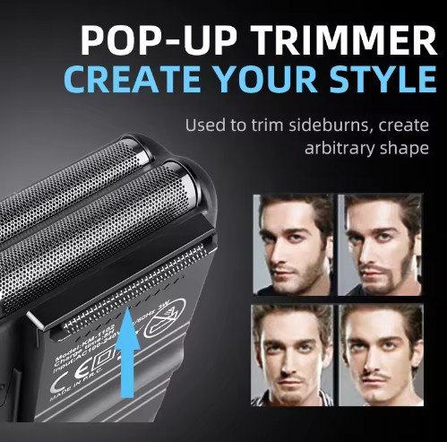 - Pop-Up Trimmer: Sideburns and detail work with a precision trimmer.