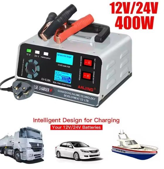 A 400W 12V/24V battery charger with smart pulse repair and trickle charging capabilities is a high-capacity, versatile tool designed for charging and maintaining large batteries in vehicles (cars, SUVs, trucks) and marine applications (boats). This charger combines power, safety, and advanced features to handle deep-cycle batteries, AGM, GEL, and flooded lead-acid types. Below is a detailed breakdown of its features, applications, and benefits.