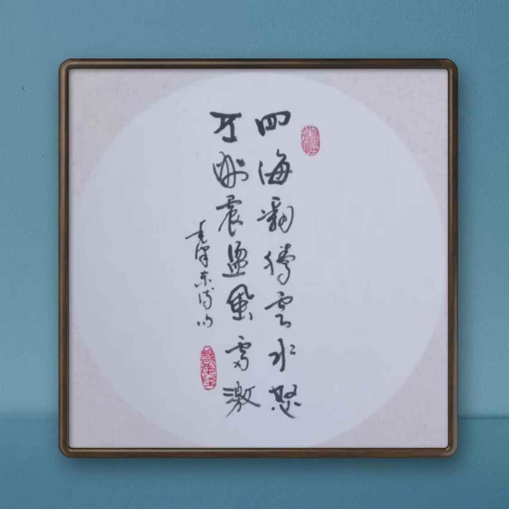 Despite the complexity of the phrase and the dynamic nature of the calligraphy, the work maintains a sense of simplicity and clarity. The powerful brushstrokes and the clean white background create a striking contrast that draws the viewer in, inviting them to appreciate the intricate beauty and the profound meaning of the text.