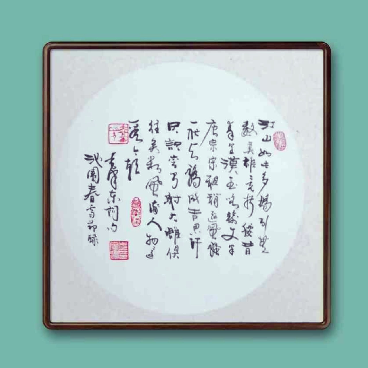 The calligraphy work by Li Jiagui, inscribed with the line “The landscape is so beautiful that it attracts countless heroes to bow in admiration,” is a masterpiece that captures the essence of Chinese artistic tradition. Set against a pristine white background, the piece features elegantly flowing and robust black Chinese characters, displaying the artist’s extraordinary skill and unique style. Each stroke, precise and powerful, embodies the depth and dynamism of Li Jiagui’s calligraphy.