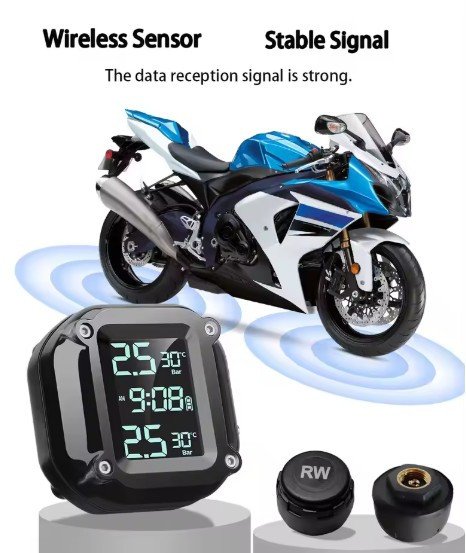 Integrated Monitoring System: This combined system includes a digital display and an external wireless tire pressure sensor, providing a comprehensive solution for monitoring motorcycle tire pressure and temperature. It allows riders to understand tire conditions at all times, ensuring safer riding.