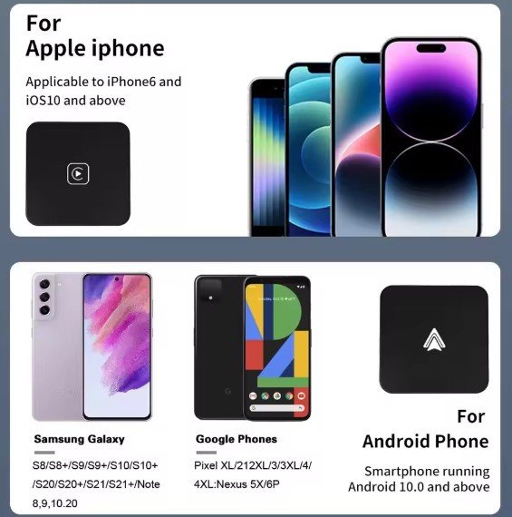 • Wireless Connectivity: Converts wired CarPlay/Android Auto to wireless, eliminating cable clutter.