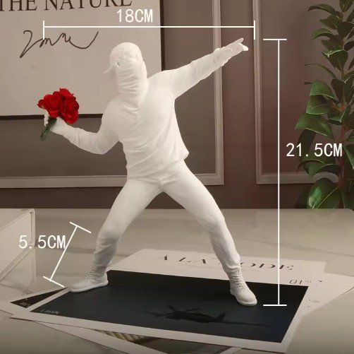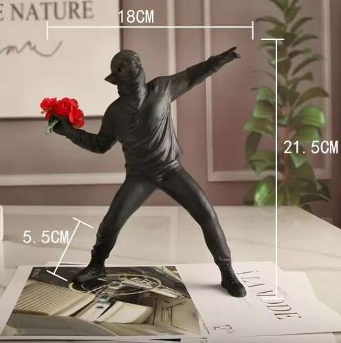 Add a rebellious edge to your space with this Banksy-inspired resin sculpture, capturing the iconic "Flower Thrower" motif in striking detail. Perfect for art enthusiasts, collectors, or anyone seeking a conversation-starting piece, this statue blends street art’s raw energy with refined craftsmanship.