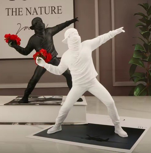 - Features the "Flower Thrower" figure—a symbol of protest and hope, reinterpreted in three-dimensional form.