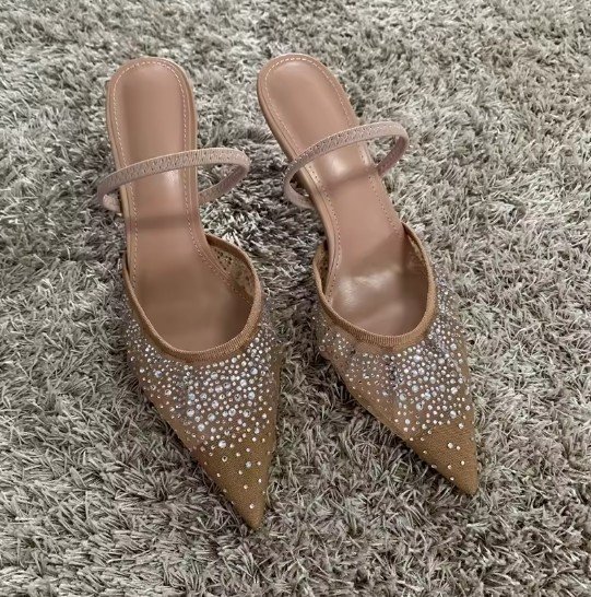 New Summer Women’s Sandals: Rhinestone-Embellished Mesh High Heels – Elegant Slingback Pointed-Toe Pumps for Party-Ready Style