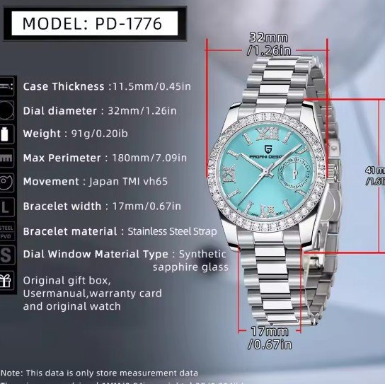 The PAGANI DESIGN 2024 32MM Women's Wristwatch is a sophisticated blend of elegance and functionality, designed for modern women who value style, precision, and durability. This quartz watch combines luxurious aesthetics with practical features, making it a perfect accessory for both casual and formal occasions.