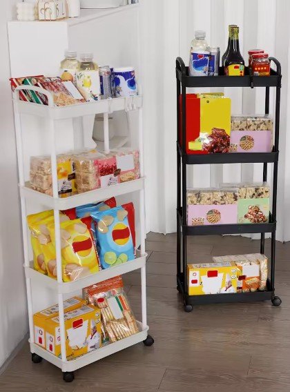 Choose from 3-tier or 4-tier options in neutral, modern colors (white, black, gray) to match any decor. The minimalist aesthetic blends seamlessly with contemporary or classic spaces, while the widened shelves (each basket: XXL size) hold everything from kitchen gadgets and toiletries to toys and office supplies. Use it as a rolling pantry, bathroom organizer, or craft storage—adaptable to any need.