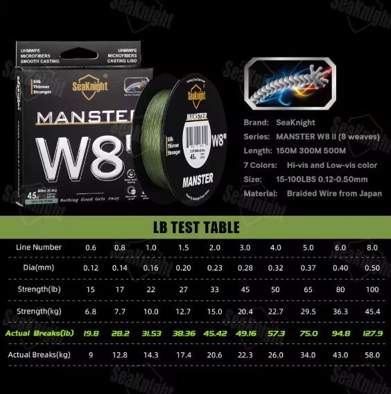 Introducing the SeaKnight Brand W8 II Series 8 - Strands Fishing Line, a premium choice for anglers seeking reliability and performance. Utilizing Advanced Wide - Angle Technology, this braided PE line ensures smoother casts and enhanced durability, making it ideal for both freshwater and saltwater environments. Crafted with 8 strands, it offers exceptional strength and abrasion resistance, minimizing the risk of losing catches. Its high sensitivity enables instant detection of underwater structures and strikes, elevating your fishing experience. Whether in tranquil lakes or rough seas, the SeaKnight W8 II Series adapts seamlessly, proving to be a versatile and essential addition to any angler’s gear collection.