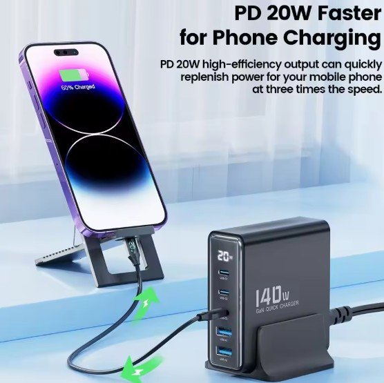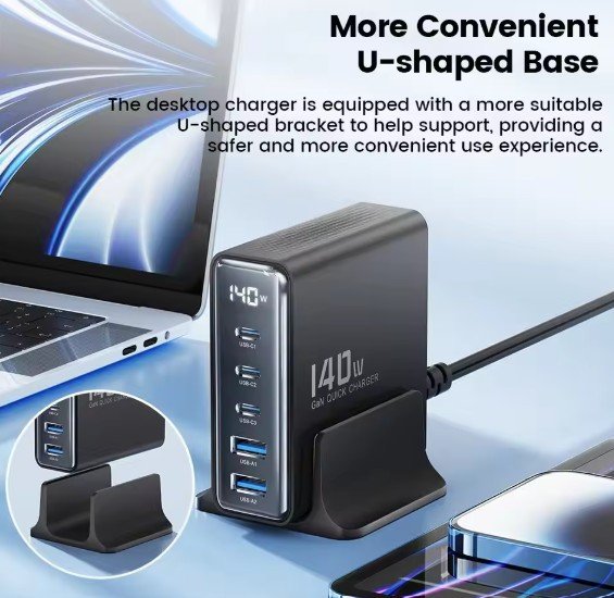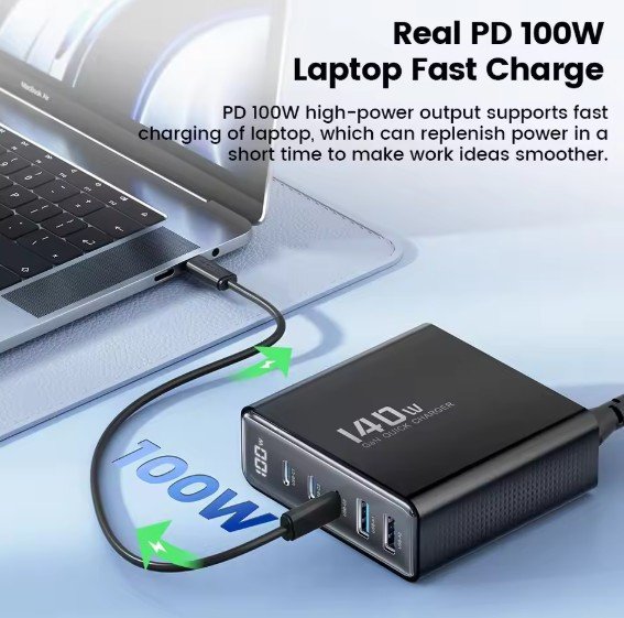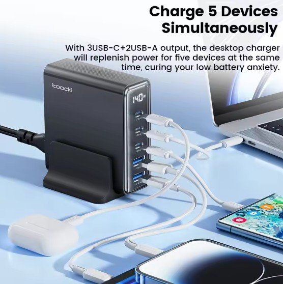 The Toocki 140W GaN USB Charger is a high-power, multi-port charging solution designed for users who need to charge multiple devices simultaneously, including smartphones, laptops, and tablets. Utilizing Gallium Nitride (GaN) technology, it offers compact size, fast charging, and an LED display for real-time power monitoring. Below is a detailed analysis of its features, performance, and value.