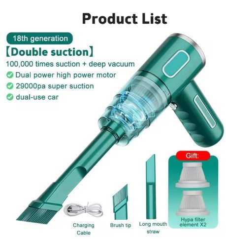 The Wireless 29,000PA Car Vacuum Cleaner is a high-powered, cordless cleaning tool designed for automotive and household use. With its strong suction, wet/dry capabilities, and portable design, it offers a versatile solution for tackling dirt, debris, and spills in cars, homes, and other tight spaces.