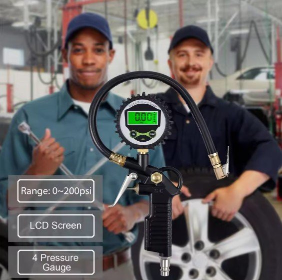 - High-Precision Pressure Gauge: Accurately measures tire pressure in PSI, BAR, or KPA (0-200 PSI range) with a clear analog or digital display (specify type) for quick, easy readings—essential for maintaining factory-recommended pressure levels.